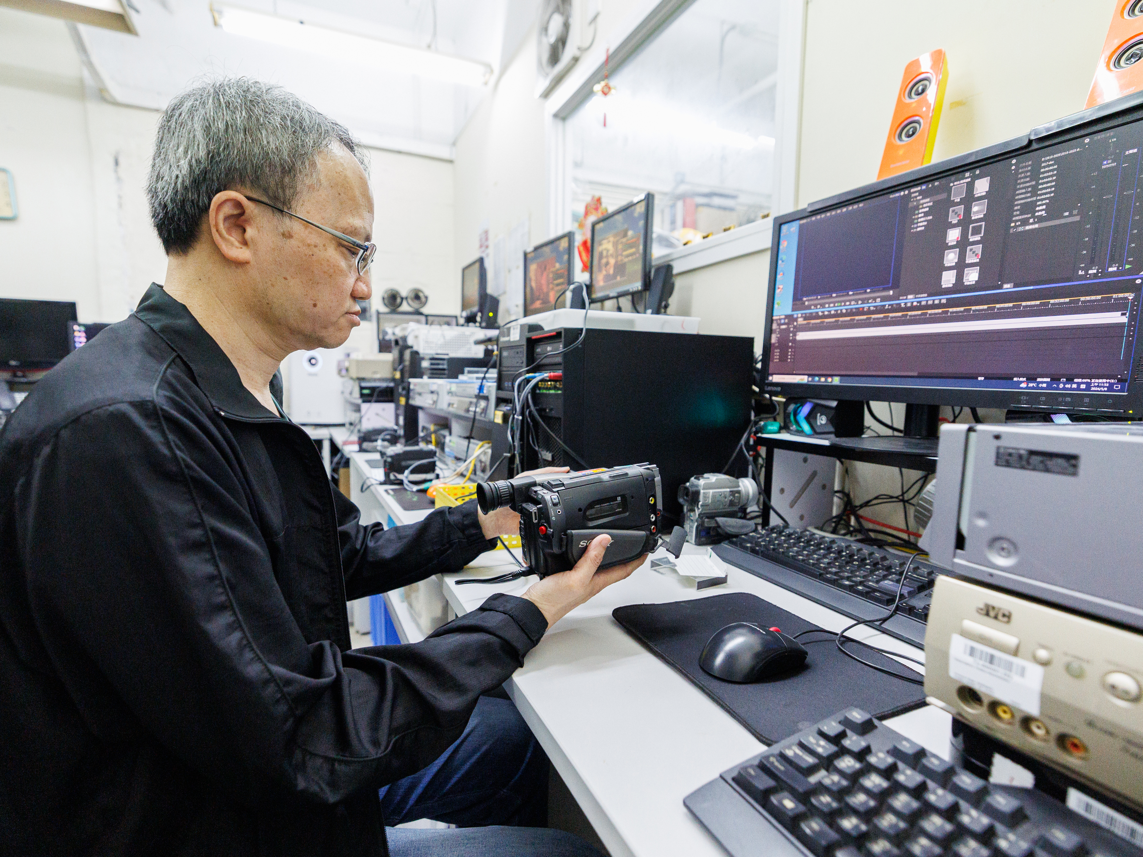 Master Kau sees FOTOMAX as his home and has been here for almost 40 years. "I love video tapes to an extent that I even have an editing system at home," he said bluntly. Having reached retirement age long ago but never quitting, Master Kau mentioned his frontline experience and recalled that in the late 1990s, many families became able to afford Hi8 video recorders. After 2000, family elderly often shot with DV cameras unskillfully, with the purpose of simply recording their daily life. However, after the shooting, what should be done with these videos?